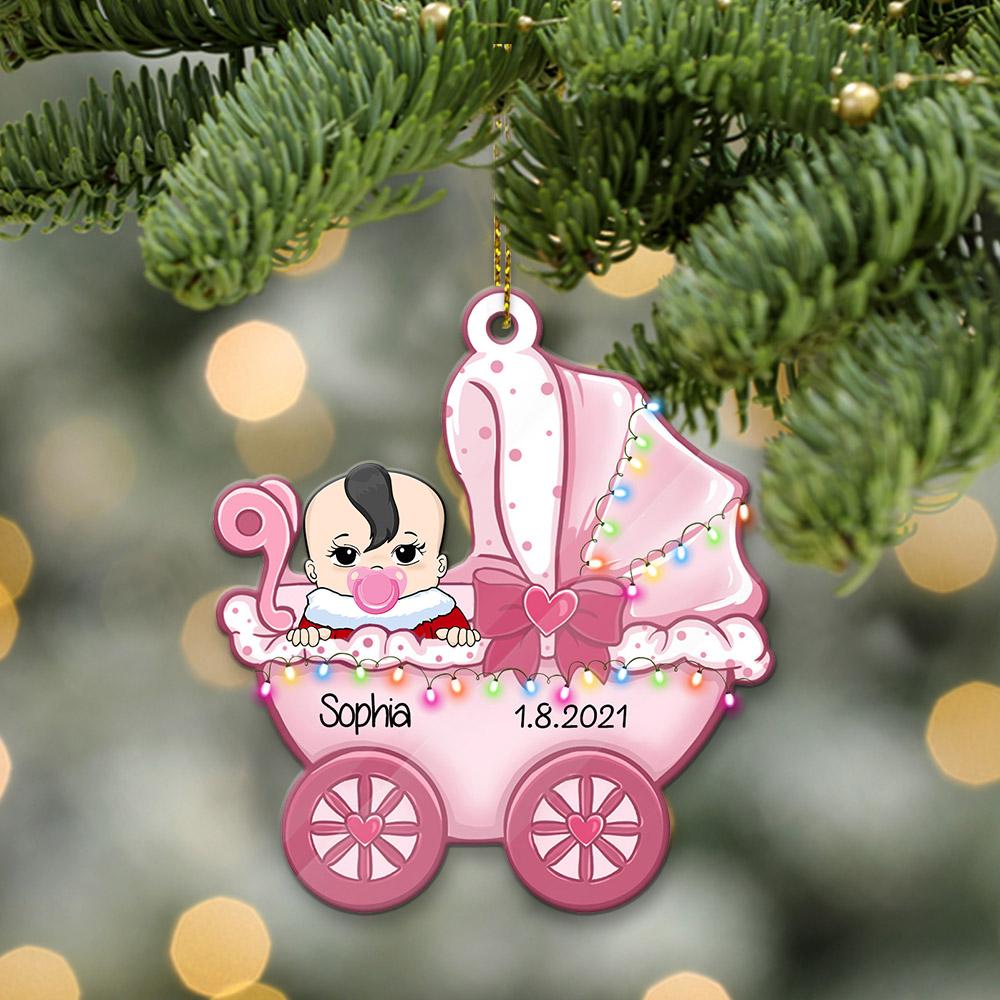 Baby Carriage Personalized One Side Acrylic Ornament For Baby From Family Member, HN98, LIHD, Made By Acrylic , Made By Acrylic And One Side Print