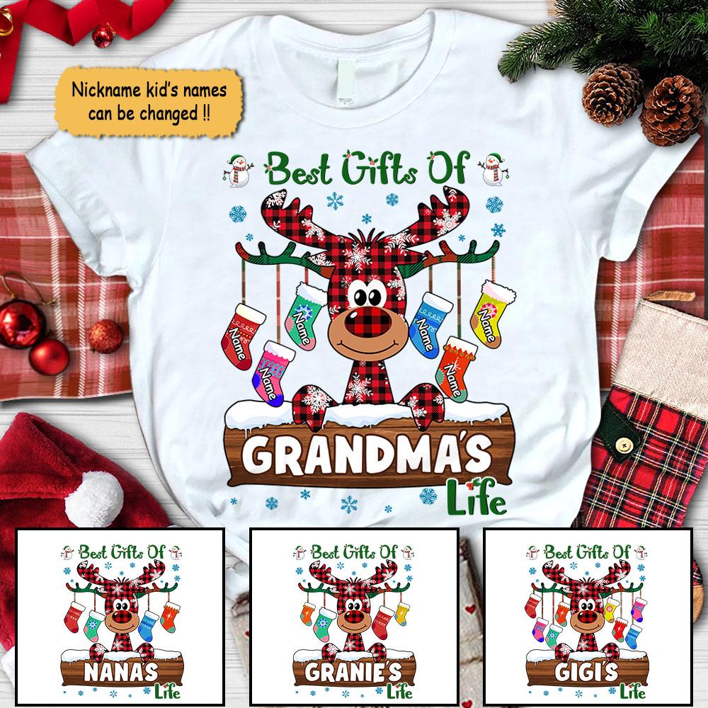 Best Gifts Of Grandma's Life Deer With Stockings Christmas Personalized Shirt For Grandma, HN98, UOND