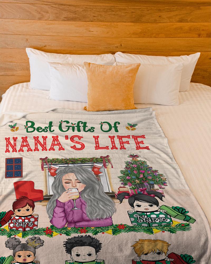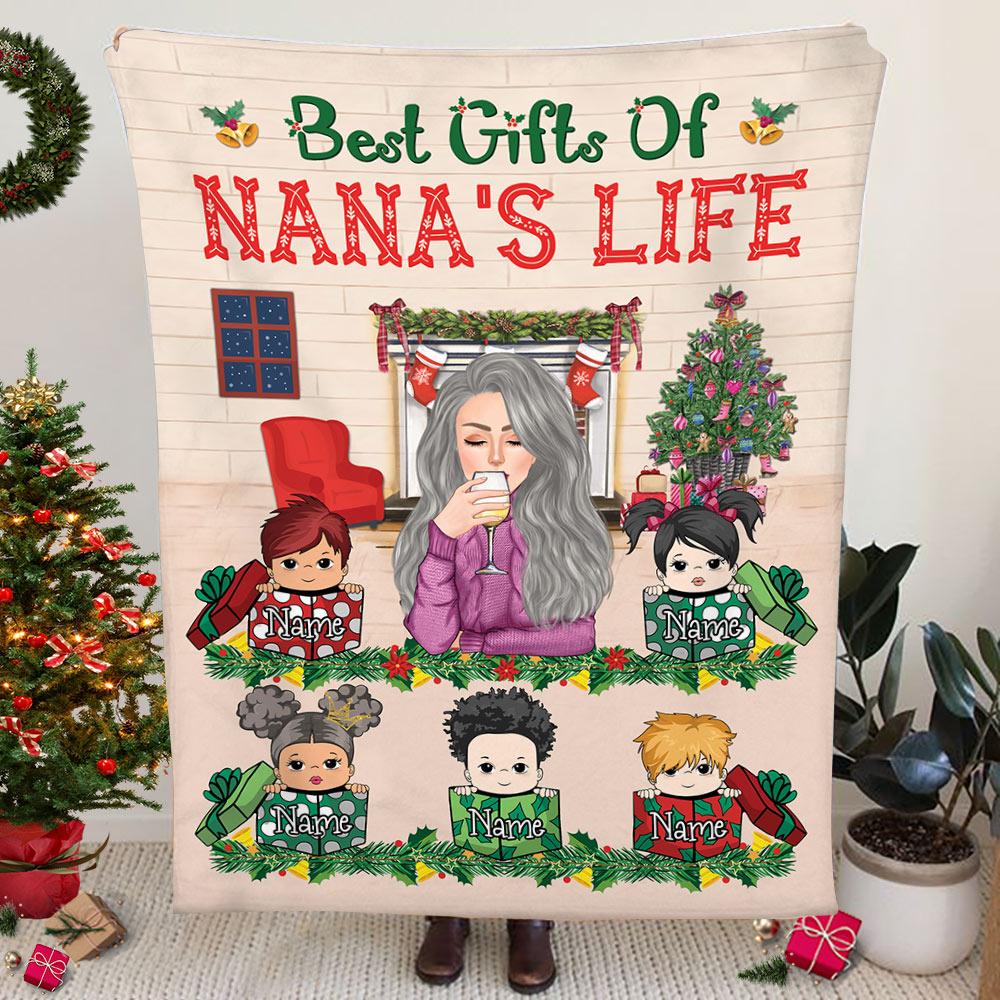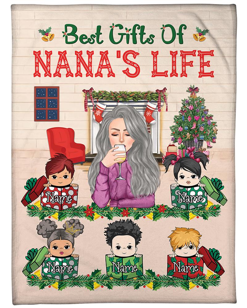 Best GIfts Of Nana's Life Cozy Fireplace With Grandkids Christmas Personalized Blanket for Grandma LOQN HN98