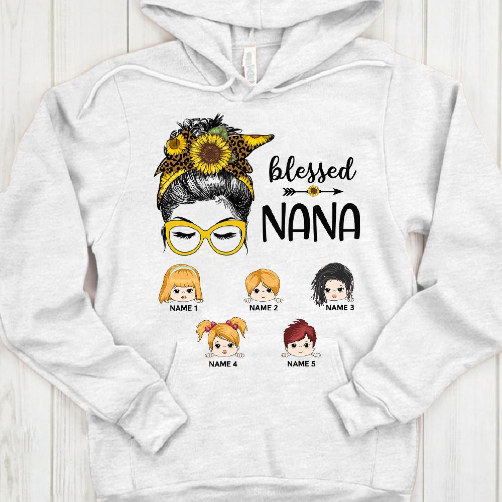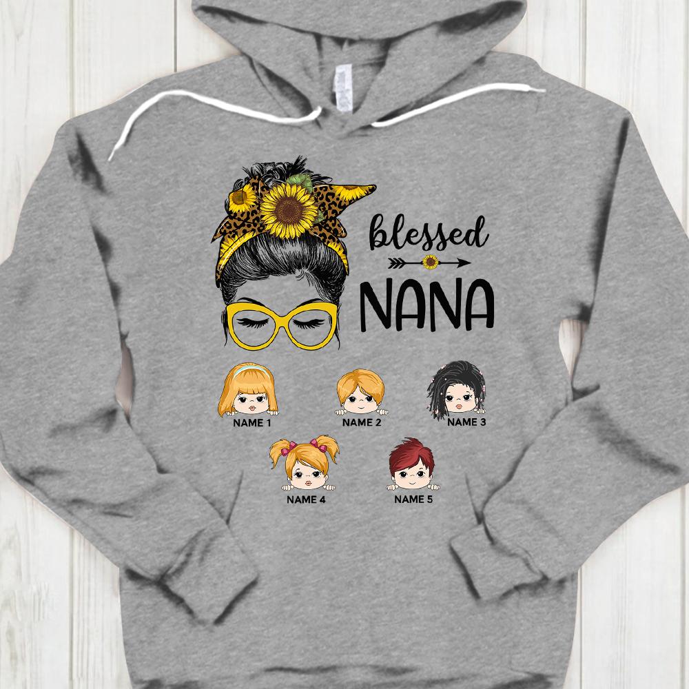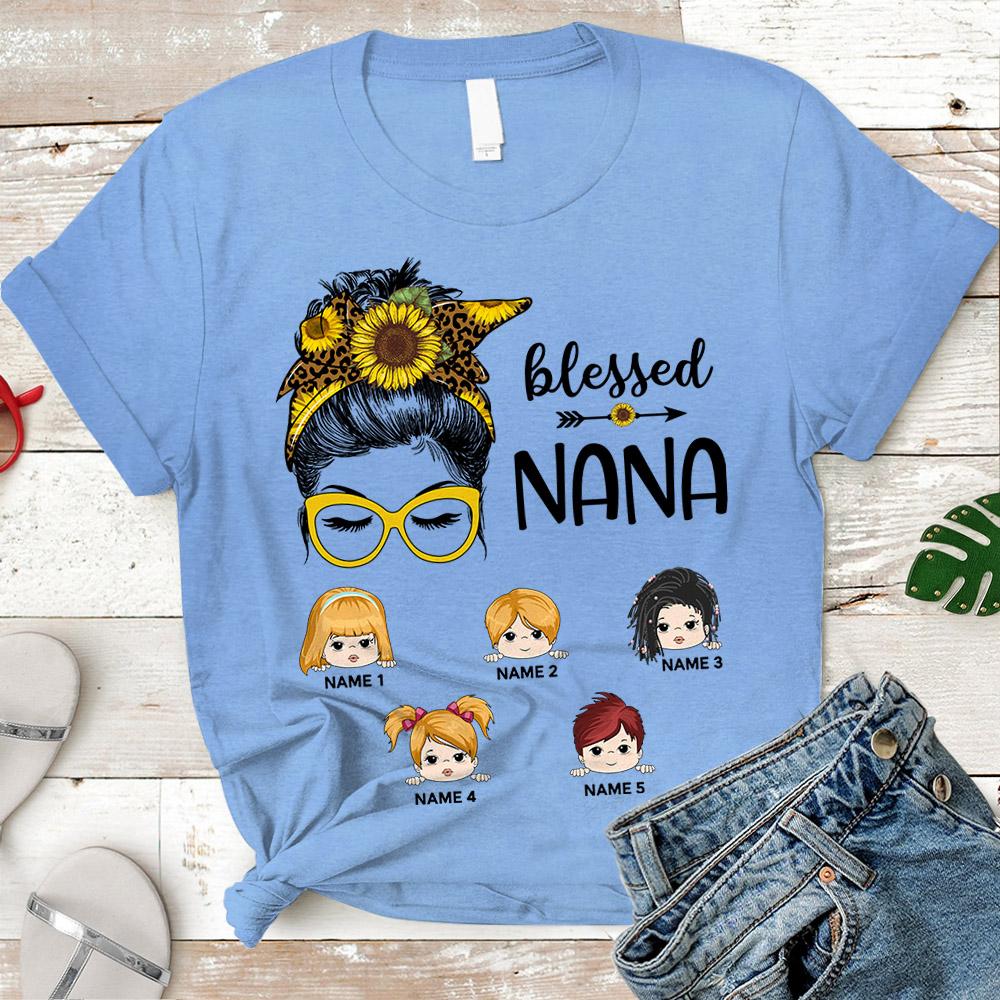 Blessed Grandma Sunflower Messy Bun Personalized Shirt For Grandma, HN98. DO99