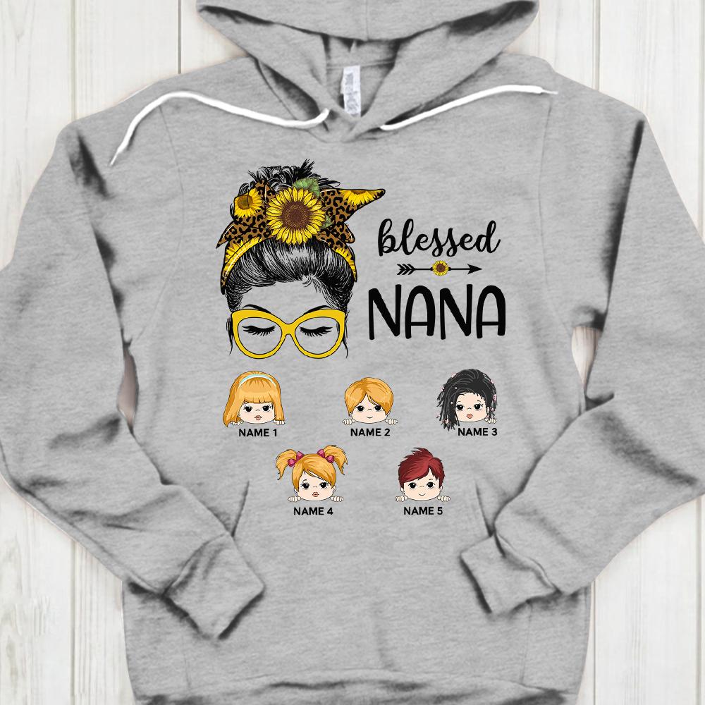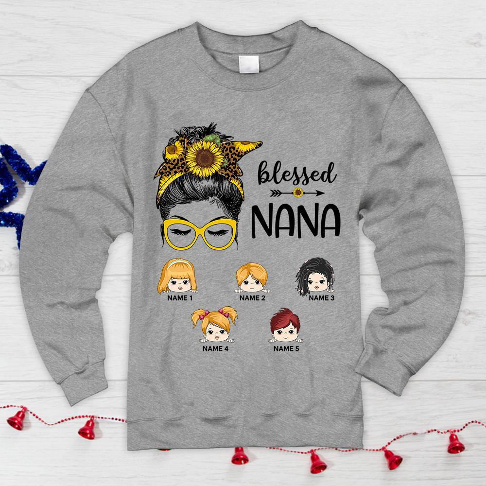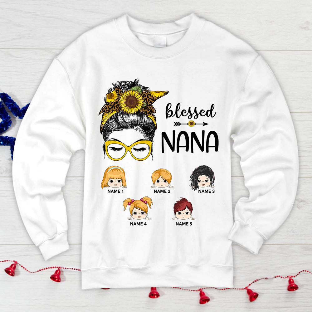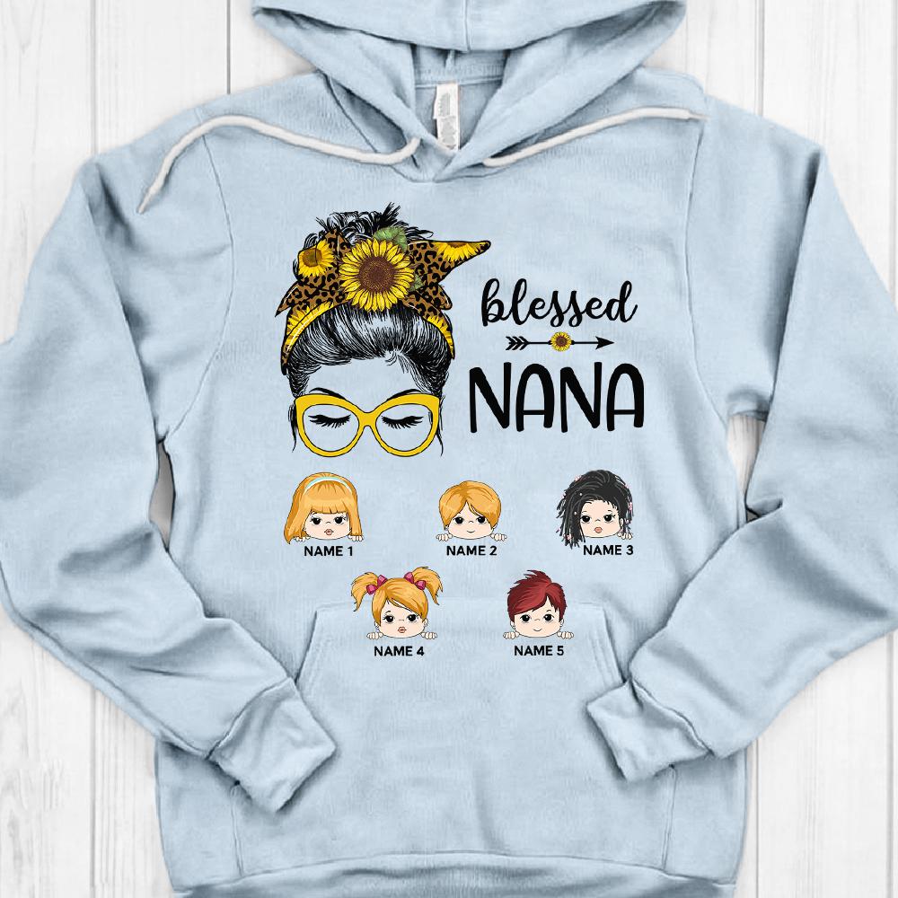 Blessed Grandma Sunflower Messy Bun Personalized Shirt For Grandma, HN98. DO99
