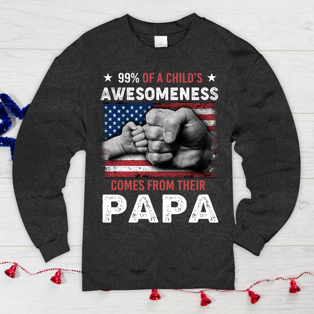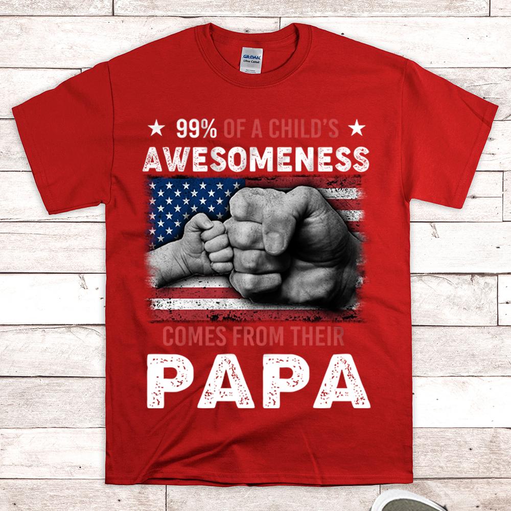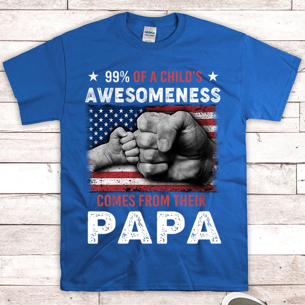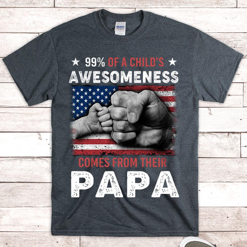 Custom Nickname Shirt, 99% Of A Child’s Awesomeness Comes From Their PAPA, Fist Bump, Gift for Papa, Grandpa, PopPop, Nickname Can Be Changed, HN98, DO99
