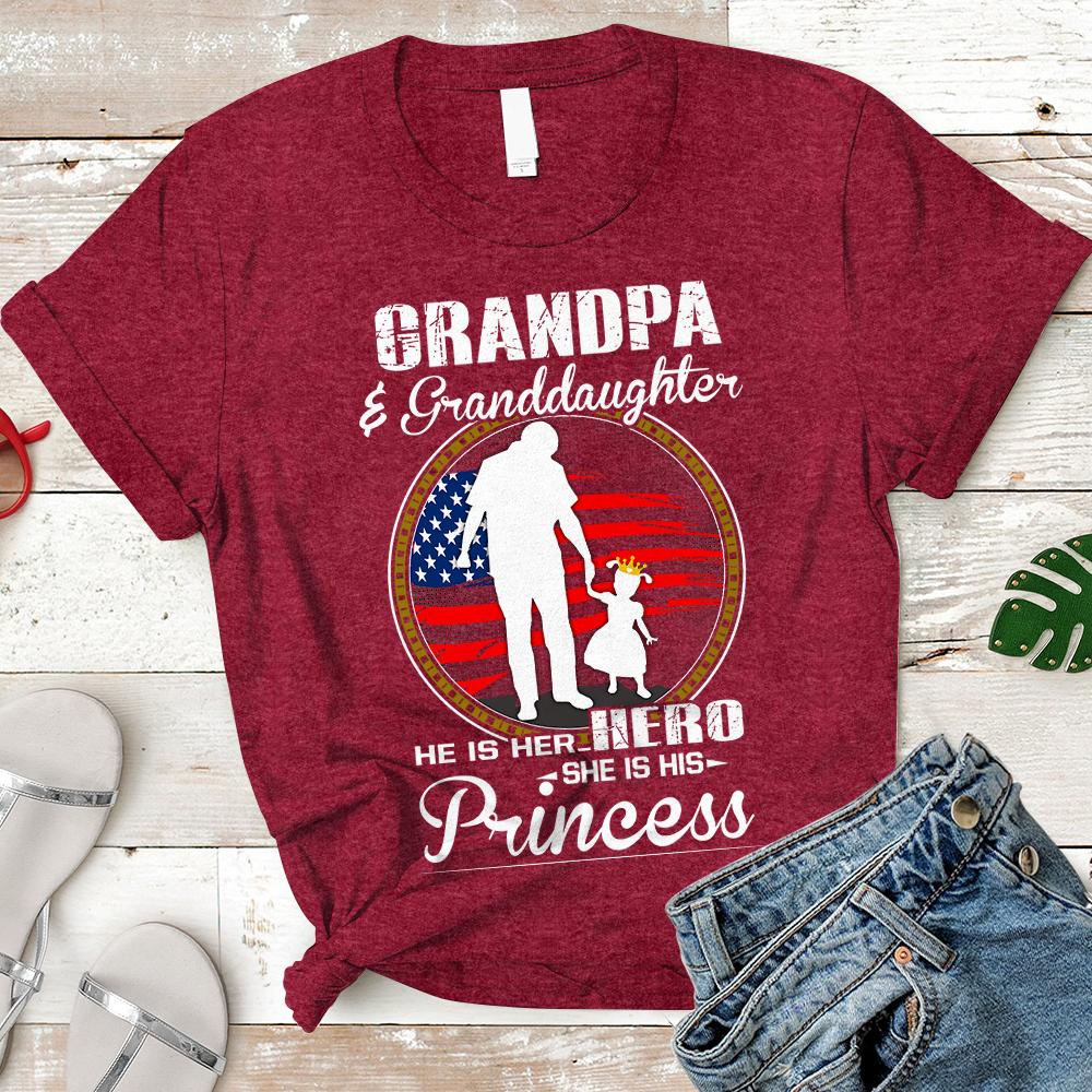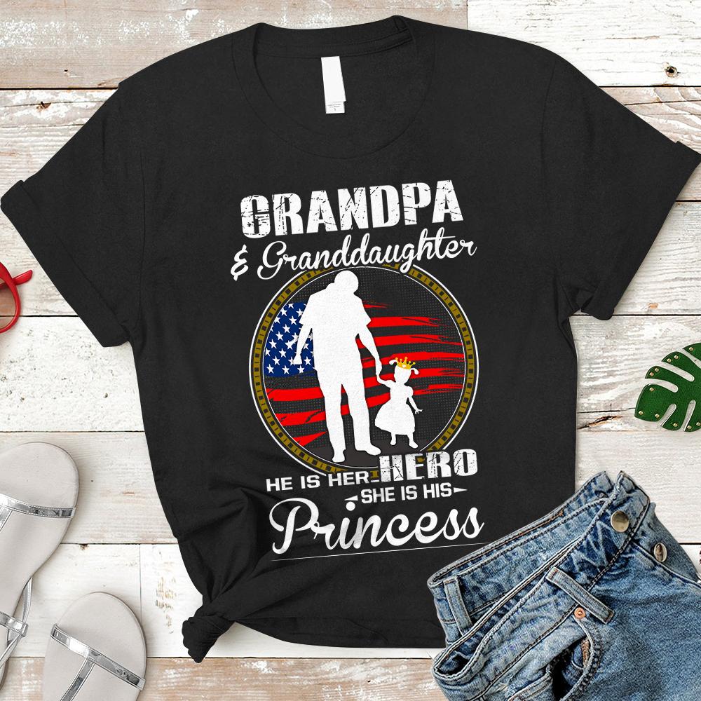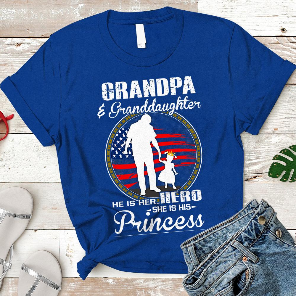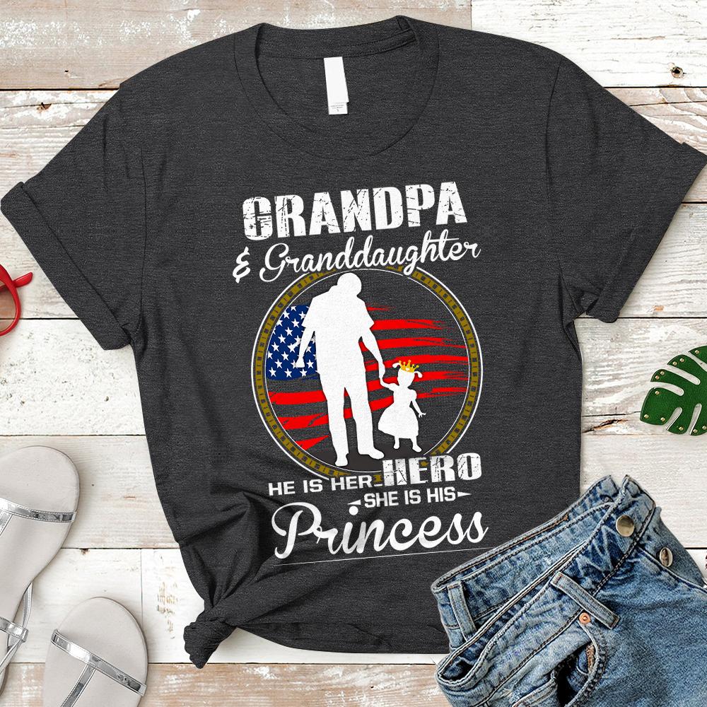 Custom Nickname Shirt, Grandpa And Granddaughter, She Is His Princess, He Is Her Hero, Vintage Shirt, Gift for Papa, Grandpa, PopPop, Nickname and Granddaughter's Names Can Be Changed, HN98, LIHD