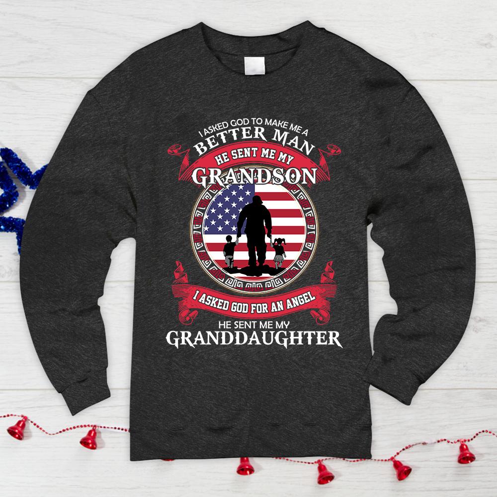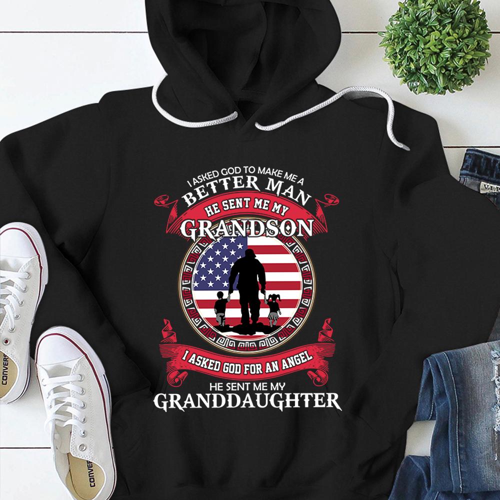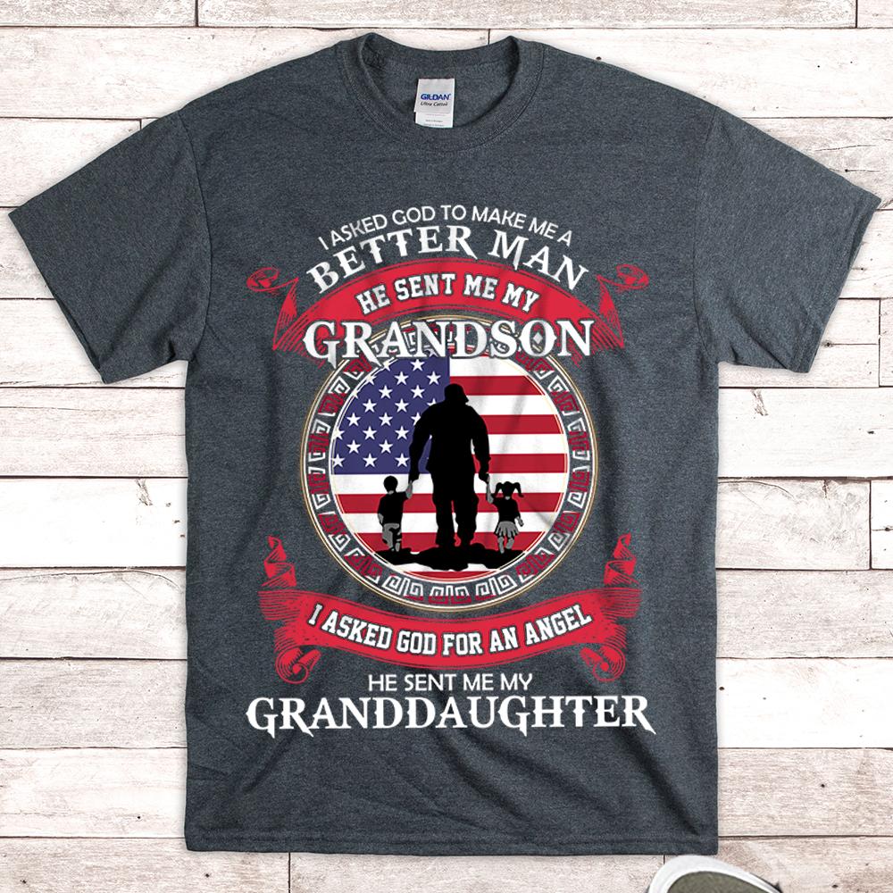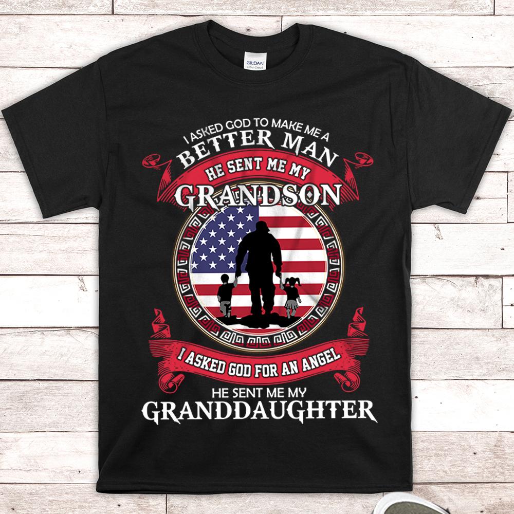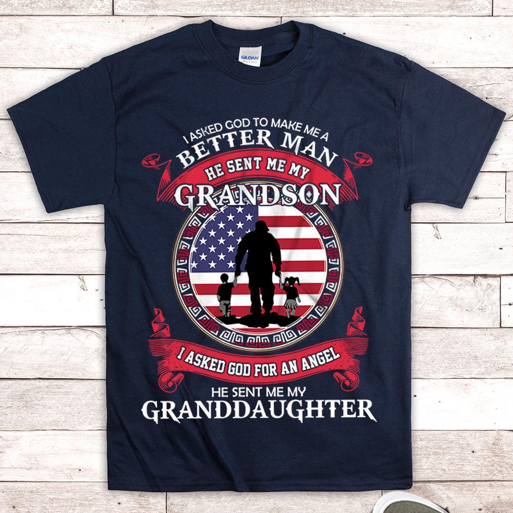 Custom Nickname Shirt, I Asked God He Sent Me My Grandson and Granddaughter, Gift for Papa, Grandpa, PopPop, HN98, UOND