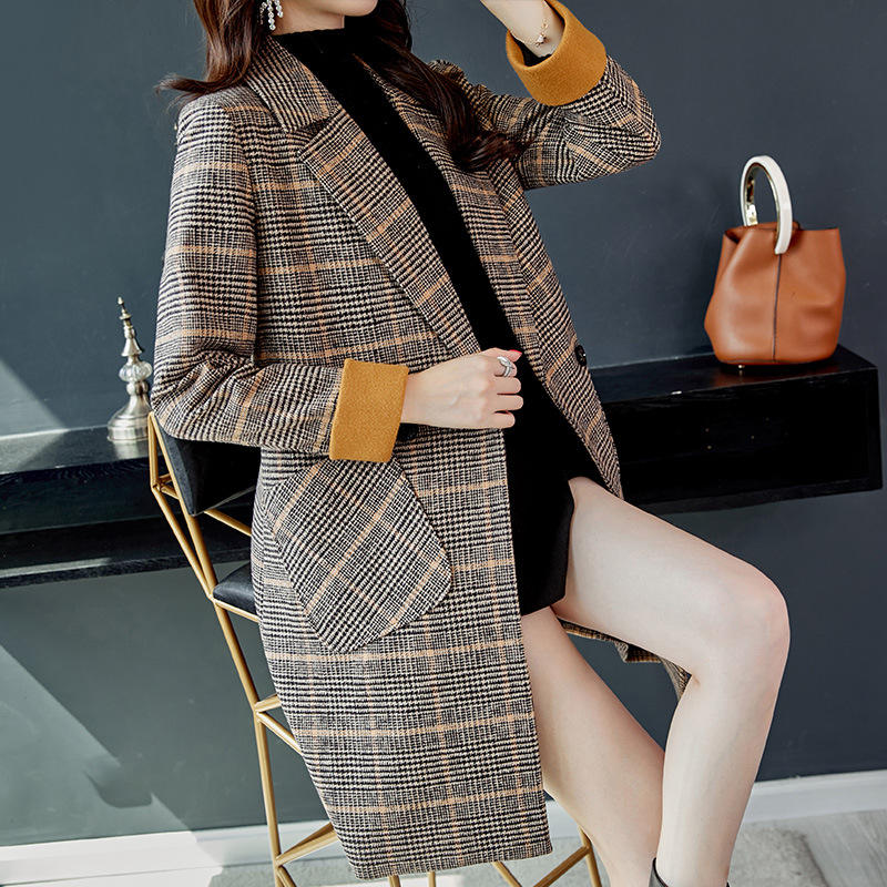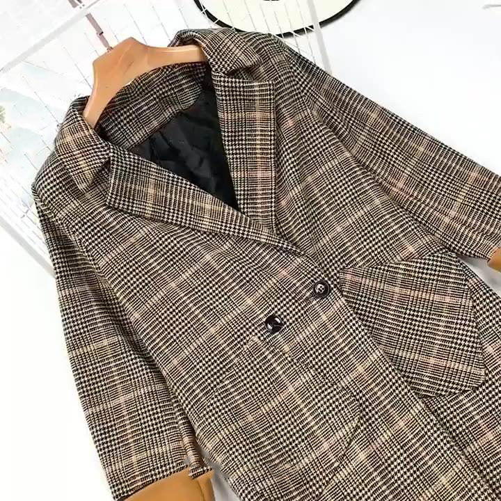 Interestpodpte Women's Jacket With Pockets Plaid Autumn
